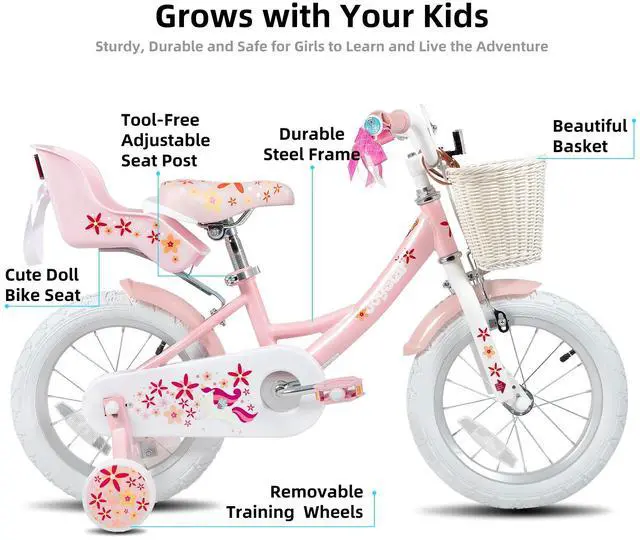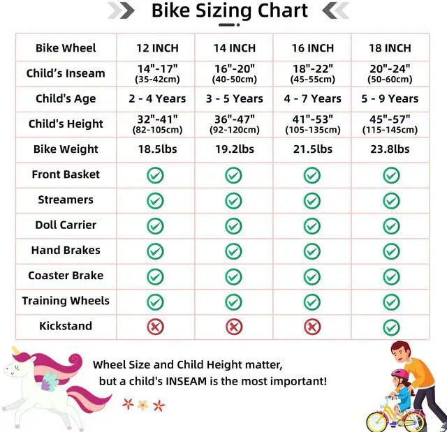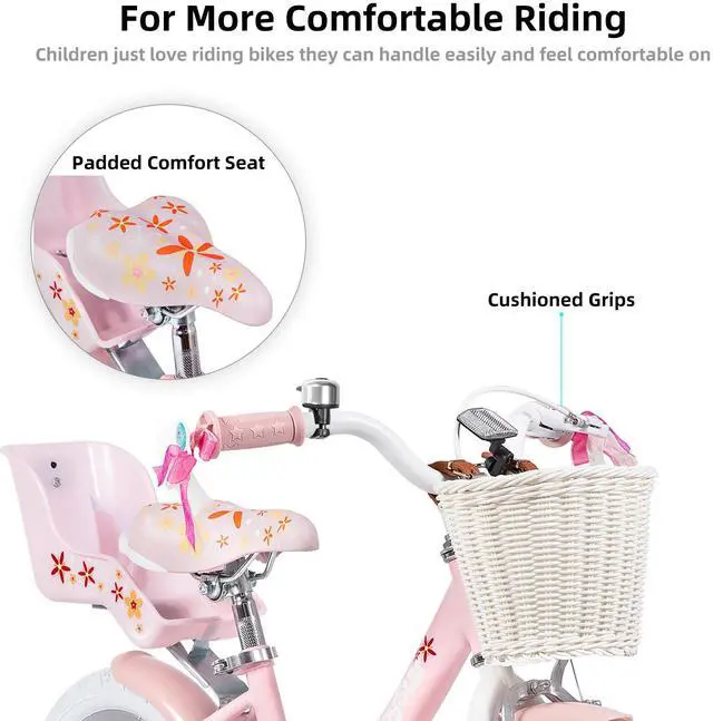 • Fun Learning Accessories: Includes training wheels for balance support, a front basket for storage, and a doll bike seat for imaginative play. These features enhance the unicorn-themed kids bike, making it a engaging toddler bicycle for creative adventures