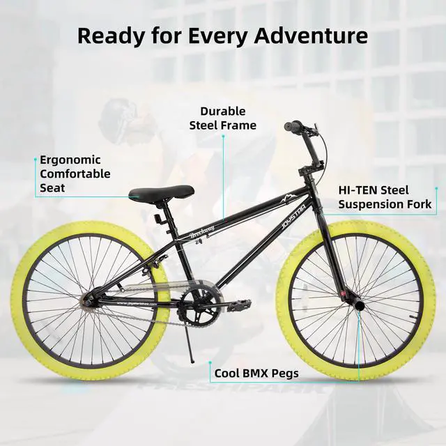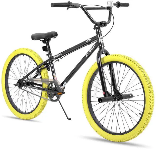 JOYSTAR Brockway Freestyle Kids BMX Bike 24" Kids Bicycles for Ages 9-12, Girls Boys Beginner-Level Riders 2 Pegs Yellow