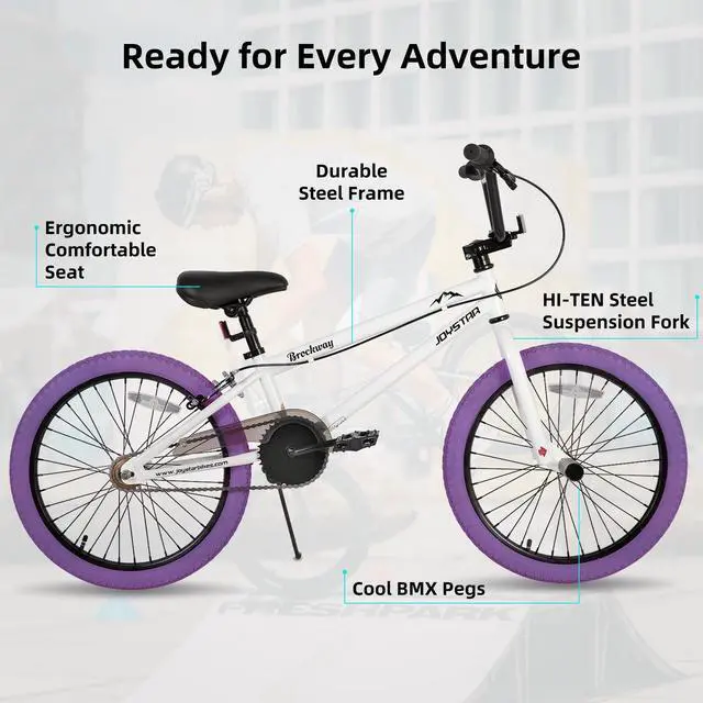 JOYSTAR Brockway Freestyle Kids BMX Bike 20" Kids Bicycles for Ages 6-10, Girls Boys Beginner-Level Riders 2 Pegs Purple