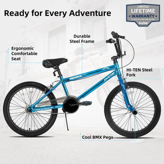 • For Real Kids' BMX Adventures with a Sturdy Frame: The JOYSTAR Gemsbok is a genuine freestyle BMX, built tough for a kid's world.Ready for jumps, bumps, and daily adventures, this bike offers a reliable, durable foundation for 7-12-year-olds at the skatepark or around the neighborhoodgiving parents lasting peace of mind
