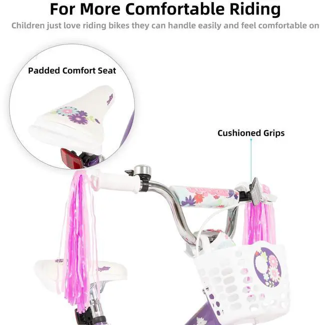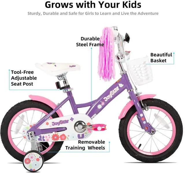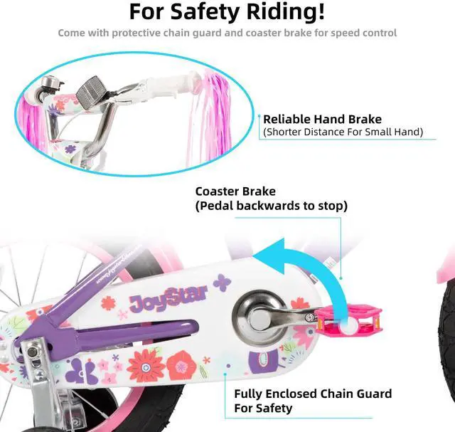Watch your little girl's eyes light up as she discovers the joy of riding with the JOYSTAR Little Violet kids bikefeaturing a safe front caliper and rear coaster brake, adorable basket for treasures, and removable training wheels, all designed to give her the confidence to ride through the neighborhood with endless smiles on her very first adventure.