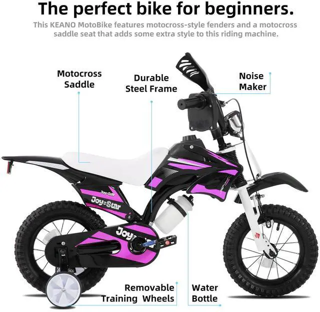 Watch your little ones face light up as they take off on the JOYSTAR Thunderboltmotocross style, training wheels, and a playful noise maker turning their first solo ride down the driveway into an adventure theyll never forget.