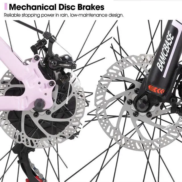 Suspension Fork and Mechanical Disc Brakes for Safe Comfort: Equipped with a responsive suspension fork, the HILAND Mountain Bike (MTB) effectively absorbs shocks from rough trails, gravel roads, and uneven surfaces, delivering a comfortable ride even on bumpy terrain. The reliable mechanical disc brakes provide strong and consistent stopping power in all weather conditions, such as rain, mud, or dry, giving beginners and experienced riders alike the confidence to ride safely.