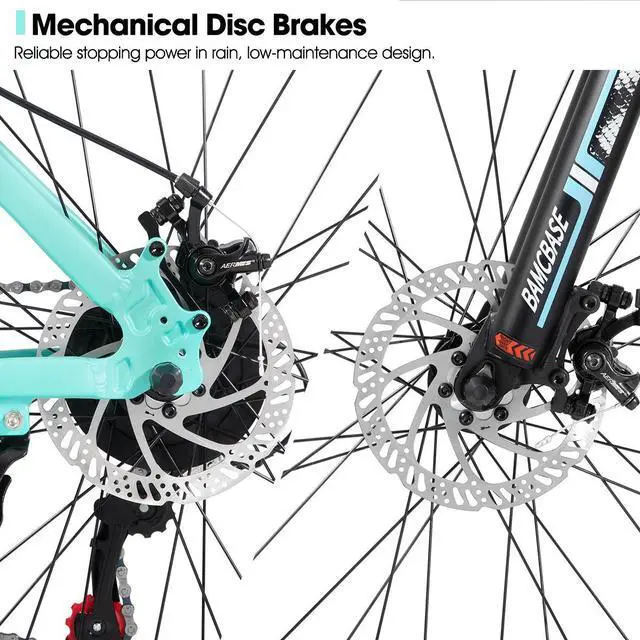Suspension Fork and Mechanical Disc Brakes for Safe Comfort: Equipped with a responsive suspension fork, the HILAND Mountain Bike (MTB) effectively absorbs shocks from rough trails, gravel roads, and uneven surfaces, delivering a comfortable ride even on bumpy terrain. The reliable mechanical disc brakes provide strong and consistent stopping power in all weather conditions, such as rain, mud, or dry, giving beginners and experienced riders alike the confidence to ride safely.
