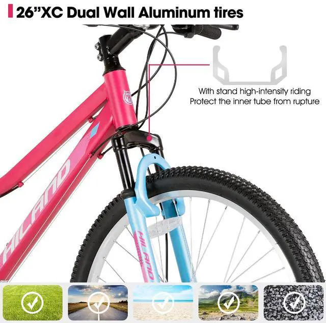 Designed for women to unleash your trail adventures with confidence, this HILAND MTB delivers reliable stopping power and versatile 18-speed control to tackle any terrain, all backed by a durable frame and arriving 85% pre-assembled for your next ride.