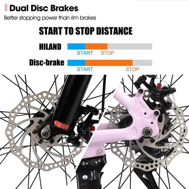 • Trail-Tuned Suspension Fork for a Smooth Ride: Equipped with a capable suspension fork, this mountain bike absorbs bumps and vibrations from uneven surfaces. Enjoy a more comfortable, controlled ride as the fork enhances traction and stabilitymaking every journey on your HILAND bicycle smoother