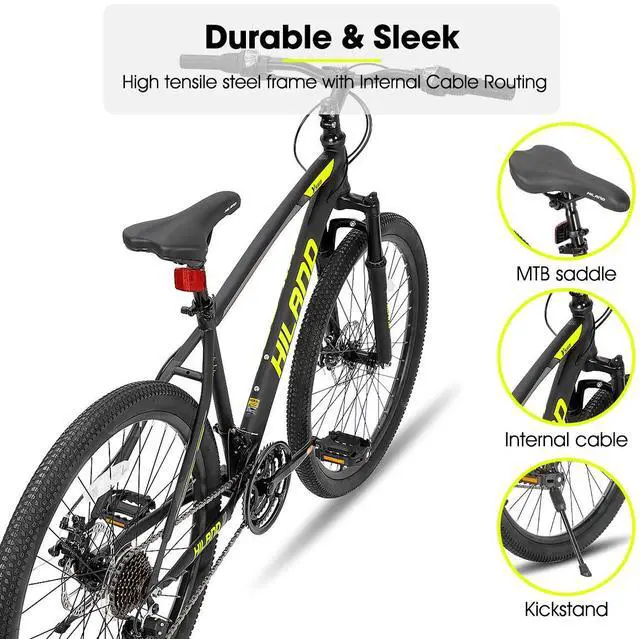 Conquer rugged trails with confidence on the HILAND Mountain Bikeits reliable disc brakes and smooth suspension fork let you tackle steep descents and bumpy paths, turning every ride into an adventure.