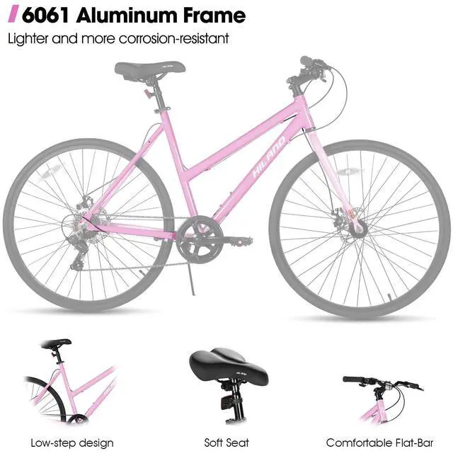 Ready for anything the city bringsfrom sudden showers to steep streets. This sleek low-step bike pairs a lightweight, durable frame with confident all-weather disc brakes and smooth 7-speed control, so you can commute in style or unwind on a weekend adventure, effortlessly.