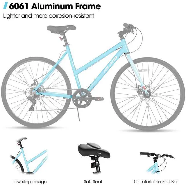 Ready for anything the city bringsfrom sudden showers to steep streets. This sleek low-step bike pairs a lightweight, durable frame with confident all-weather disc brakes and smooth 7-speed control, so you can commute in style or unwind on a weekend adventure, effortlessly.