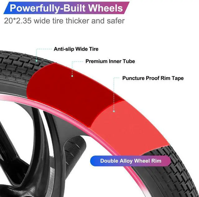 • Excellent Safety: 20 inch kids bmx bike with non-slip u-brake handbrake system; Wide 2.35" tyres for more stability; Hi-ten steel frame, chain guard and front and rear reflectors keep your kids safe while riding