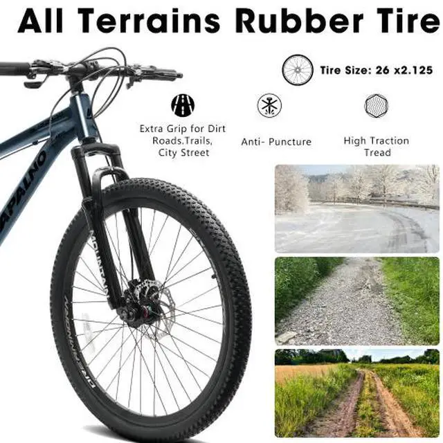 A26317 KIAPALNO 26 Inch All-Terrain Mountain Bike with Disc Brakes 21-Speed Drivetrain & Durable Carbon Steel Frame Ideal for Men and Women, Perfect for Trail Riding and Touring