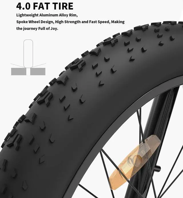 ã?�â??Adaptation to complex topographyã?? Our elect bikes for adults with 26 * 4.0 inch tires. Provide you with excellent traction. You can easily ride over beach, snow, gravel, rain, dirt, sand and even ice and enjoy the ultimate e-bike adventure.