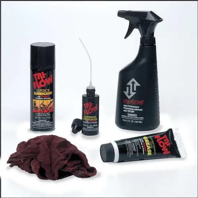 General Purpose Lubricant, Wet, Tri-Flow, Net Fill 2 oz., Container Size 2 oz., Lubricant Container Dropper Bottle, Mineral Oil, PTFE Primary Additive, Min. Operating Temp. -60 Degrees F, Max. Operating Temp. 475 Degrees F, NSF Rating H2 No Food Contact, 50 State VOC Compliant Yes, VOC Content 3.30 Percent, Lubricant Color Brown, Odorless No, Flammable Flammability, Extremely Flammable Aerosol (Category 1), Flash Point -20 Degrees F, Standards ASTM D3233, ASTM D2266. This item has been restricted from sale in the following state(s): []