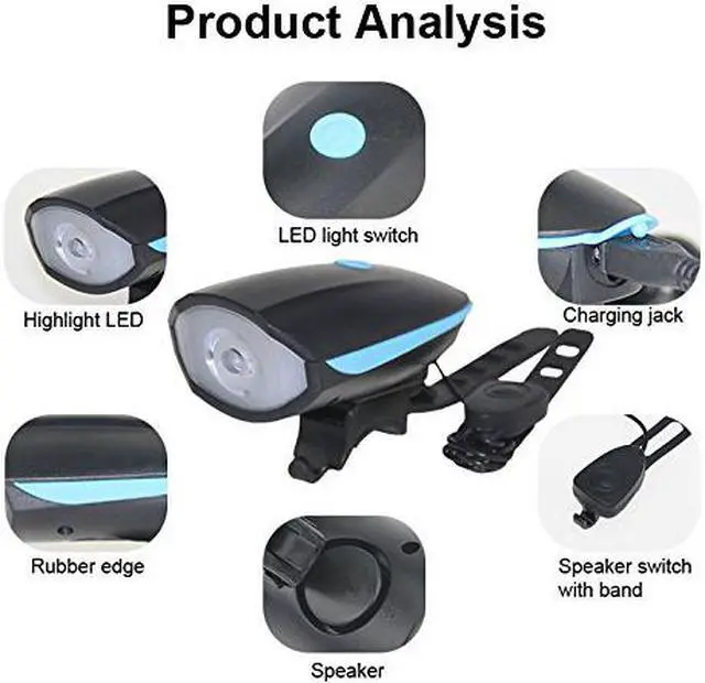 One-stop shopping allows you to remove the tedious selection process. Built-in 1200MAH polymer lithium battery (can be charged more than 500 times) IPX4 level waterproof headlight 3 mode lighting: Hard light mode-Weak light mode-Strobe mode 120 db loud enough to remind the trucking, bus, car and van drivers make riders safer. WIth 120 db horn, 5 sound modes, holding down the button for about 5 seconds to switch. Easy to install and quick release. About Bike LED taillight