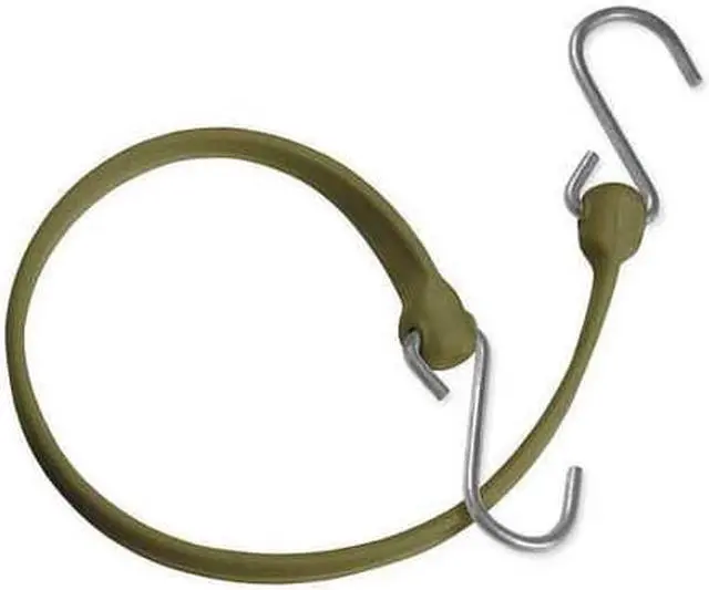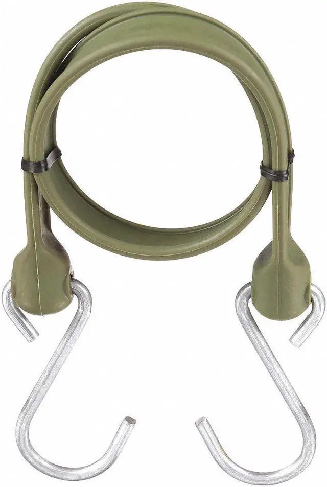 Bungee Strap, Stretched Bungee Length 48 In., Bungee Length 24 In., Bungee Material Polyurethane, Bungee End Type S-Hook, Bungee End Material Galvanized Steel, Color Military Green, Bungee Width 1-1/2 In., Bungee Thickness 3/16 In., For Use With ATVs, Cargo Rack, Truck, Car, Motorcycle, RV, Tents, Tarps, Luggage, Bundled PVC Pipe, Bundled Electrical Extension Cords, Carpet Rolls, Pickups, Dollies, Hydraulic Hoses, Industrial Grade Projects, Hospitals and Hospitality Industry Uses. This item has been restricted from sale in the following state(s): []