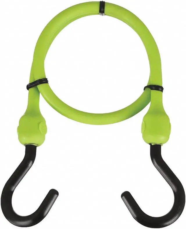 Bungee Cord, Stretched Bungee Length 48 In., Bungee Length 24 In., Bungee Material Polyurethane, Bungee End Type J-Hook, Bungee End Material Nylon, Color Safety Green, Bungee Width 1-1/2 In., For Use With ATVs, Cargo Rack, Truck, Car, Motorcycle, RV, Tents, Tarps, Luggage, Bundled PVC Pipe, Bundled Electrical Extension Cords, Carpet Rolls, Pickups, Dollies, Hydraulic Hoses, Industrial Grade Projects, Hospitals and Hospitality Industry Uses, Manufacturers Warranty Length Limited Life. This item has been restricted from sale in the following state(s): []