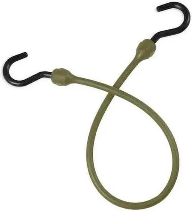 Bungee Cord, Stretched Bungee Length 24 In., Bungee Length 12 In., Bungee Material Polyurethane, Bungee End Type J-Hook, Bungee End Material Nylon, Color Military Green, Bungee Width 1-1/2 In., For Use With ATVs, Cargo Rack, Truck, Car, Motorcycle, RV, Tents, Tarps, Luggage, Bundled PVC Pipe, Bundled Electrical Extension Cords, Carpet Rolls, Pickups, Dollies, Hydraulic Hoses, Industrial Grade Projects, Hospitals and Hospitality Industry Uses, Includes (2) Overmolded Nylon Ends. This item has been restricted from sale in the following state(s): []