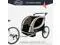 ClevrPlus' Deluxe Bicycle Trailer, Jogger, Stroller is a full-featured, quality and cost-effective solution to your child carrying needs. Top features include a lightweight but sturdy steel frame, front braking system, and removable front wheel to convert the jogger to a bicycle trailer! (it won't work for quick release bikes) Seats two kids side by side!
