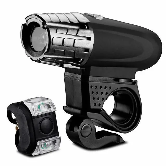 Wherever you enjoy night cycling, it is necessary to add bike light both in the front and the back for safety concern. The Bike headlight set is such a bike gear designed for all cycling enthusiasts . Each set includes 1 USB rechargeable headlight, 1 red taillight and 1 white taillight. 4 lighting modes with front light and 3 lighting modes with the tail light will not only light up your surroundings but also let people and vehicles around you see you clearly. This bike light set featured with IP65 will protect against water from any angle. It comes with headlight Usb cable and batteries, providing great convenience. They are compatible to bicycles of any kind, definitely make your night cycling much safer and more enjoyable!
