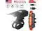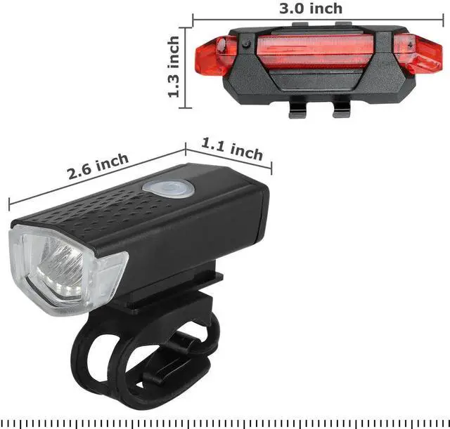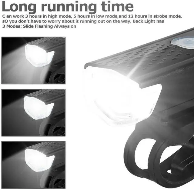 Front light has 3 modes-High/Low/Flashing, torch light with bike clamp. Button switch. Special designed light beam produces powerful lumen and generates a brilliant floodlight for Large area without wasting energy.