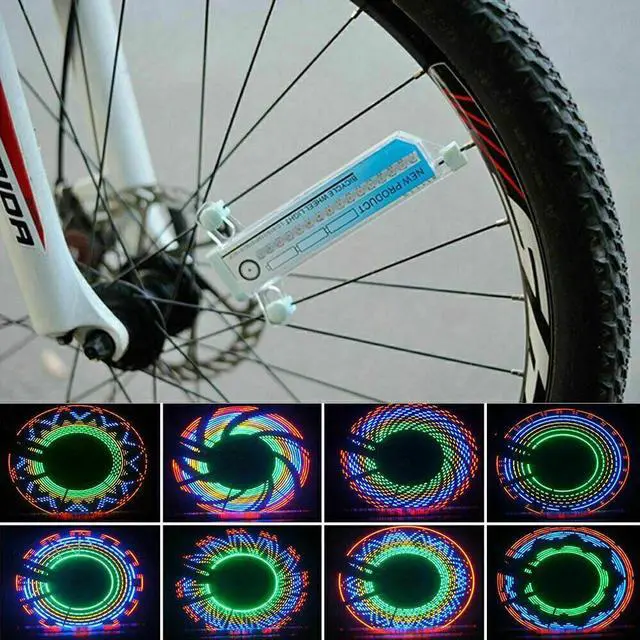 30 Colorful Patterns:Consists of totally 32pcs LEDs in both sides of the light with green,orange,blue and red color,provides you with 30 gorgeous and cool flower patterns which will alternate automatically every 3 seconds. Full wheel displays a beautiful image at a speed of 15km/h,a full image in 25km/h,and as a safety night light in10km/h.