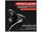 USB rechargeable with 220mAh battery; fully charges in 1.5 hours, lasts 4-8 hours
