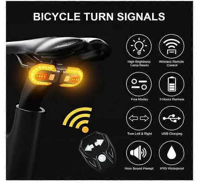 Enhance your cycling safety with our advanced wireless bike turn signals, featuring a remote control for effortless operation.