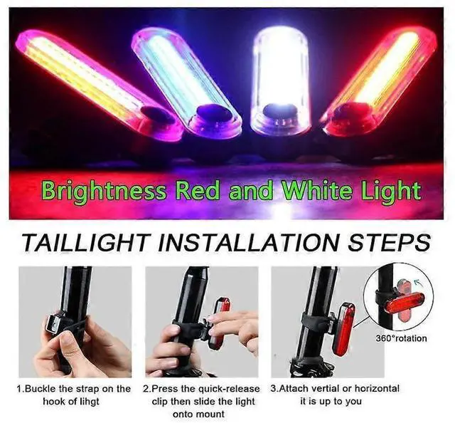 - **7 Bright Light Modes**: Choose from red and white full brightness, fast/slow flashing, and multiple strobe options for high visibility in fog, dusk, or night.