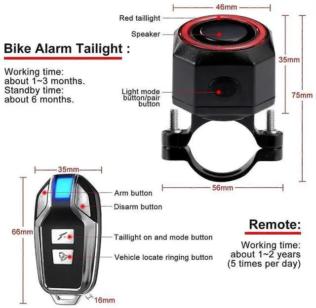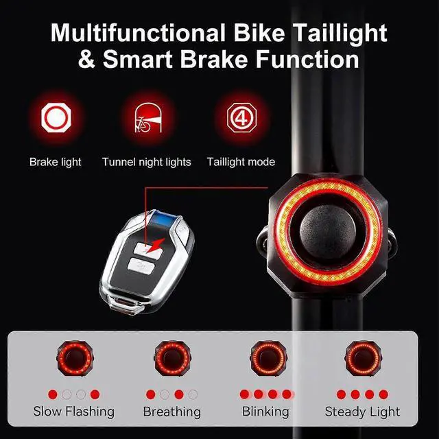 4-in-1 Functionality: Serves as a warning light, brake light, anti-theft alarm, and electric bike horn for comprehensive protection.