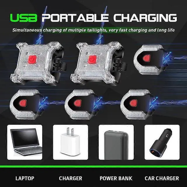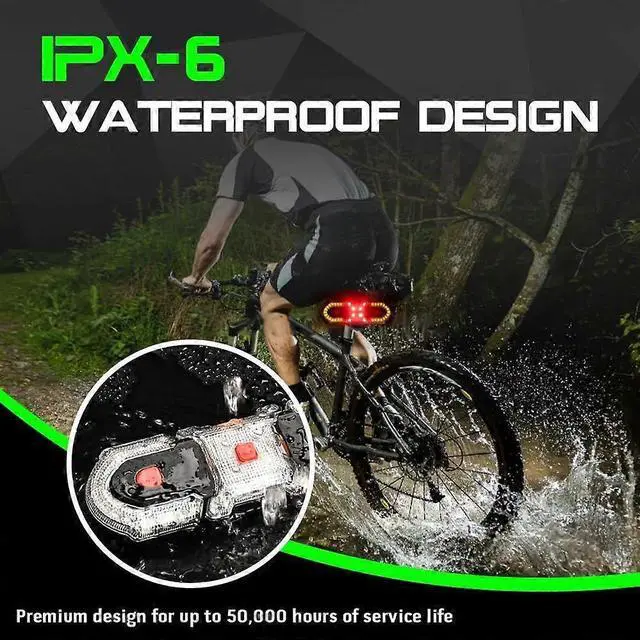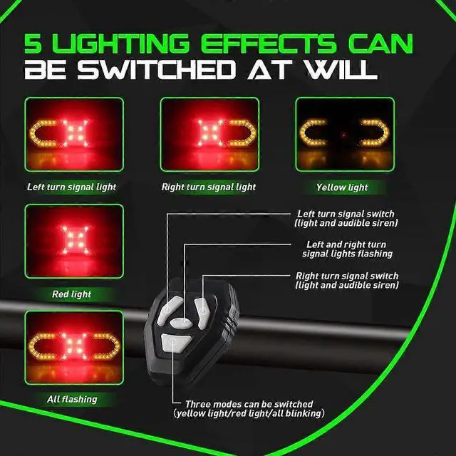 5 customizable light modes: left/right turn signals, double flashing, steady, breathing, and strobe