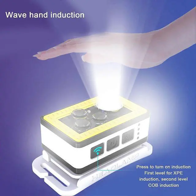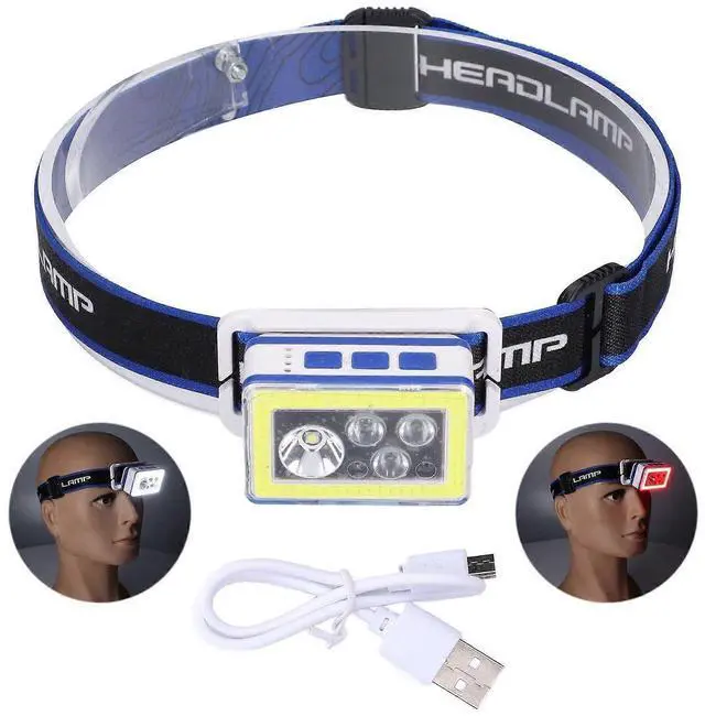 • Ecocleanpath Magnetic COB LED Headlamp with USB Charging & Induction Mode - Detachable, Navy Blue for Outdoor/Cycling