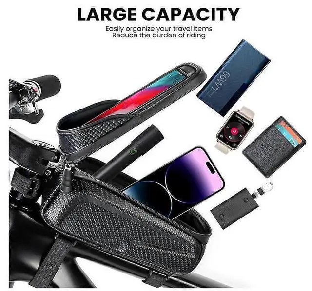 **Spacious & Versatile Storage**: Holds phones up to 6.5 inches, plus keys, wallet, sunglasses, snacks, and repair kits for organized cycling.