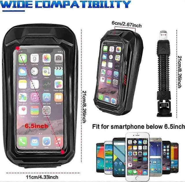 Keep your essentials secure and accessible on every ride with this durable, waterproof bike phone holder bag. Crafted from high-quality EVA and waterproof materials, it resists deformation and protects against splashes and light rain. The transparent TPU touchscreen allows full phone functionality for navigation, music control, and calls without removing your device.