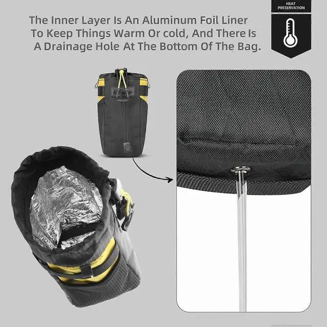 Control & Drainage: Aluminum foil insulation maintains drink temperature, with bottom drain hole to manage spills.