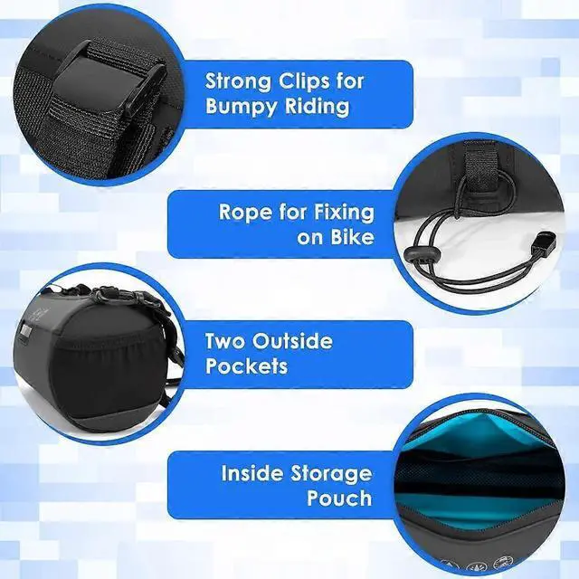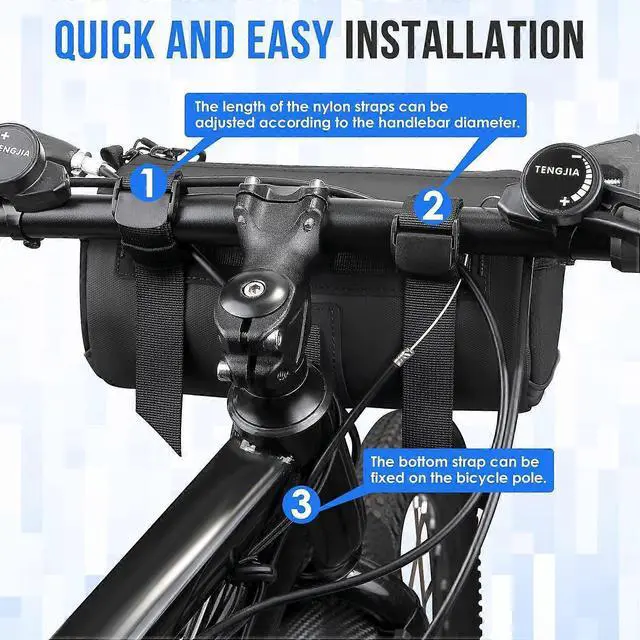 Adjustable Mounting**: Features two upper removable straps and a bottom elastic drawstring for stable, customizable fit on most handlebars (mountain, road, and MTB bikes).