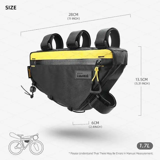 - **Compact & Versatile**: Measures 11" x 5.31" x 2.4" with 1.7L capacity, fitting frames over 54 yards without blocking water bottle access (up to 620ML).