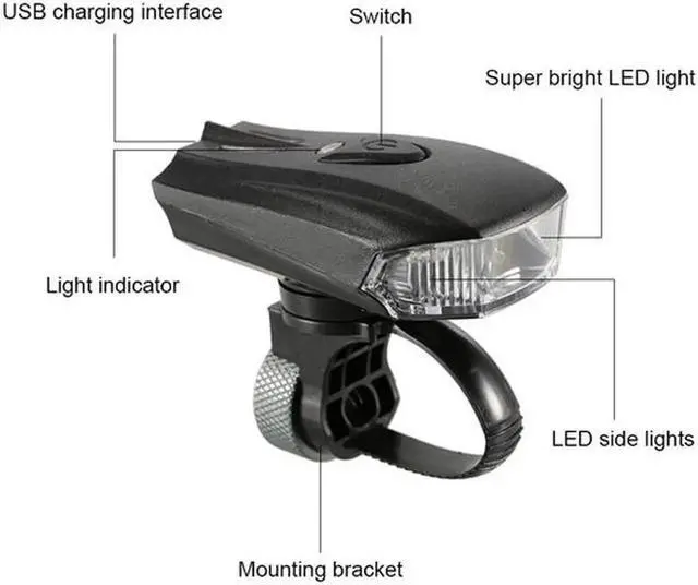 Led indicator: blue (when light is in smart mode), red (when light is charging), green (when light is fully charged) Bike light stand with strap to adjust to bicycle handle