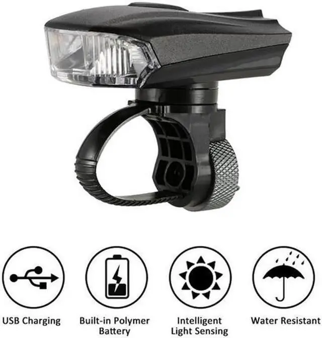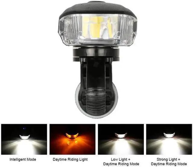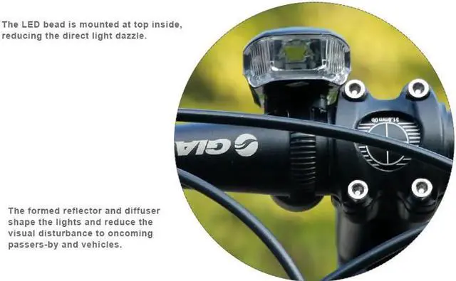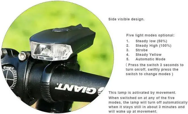 FRONT LIGHT FEATURES SMART MODE TO SAVE BATTERY - Prevents draining the battery in case the light accidentally switches on as it will automatically turn off after three minutes if no movement is detected.The beam intensity auto adjusts to lighting conditions when set to smart mode