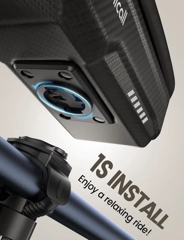 Quick Install and Remove The installation process for this bike frame bag is quick and easy, you simply need to install the fix clamp onto your bike, then rotate the bicycle bag 90 degrees to install or remove it, so you can easily take it with you wherever you go; NOTICE: The diameter range of bike round tube: 0.55-1.77"(12-45mm), ). please measure your handlebar size before purchasing