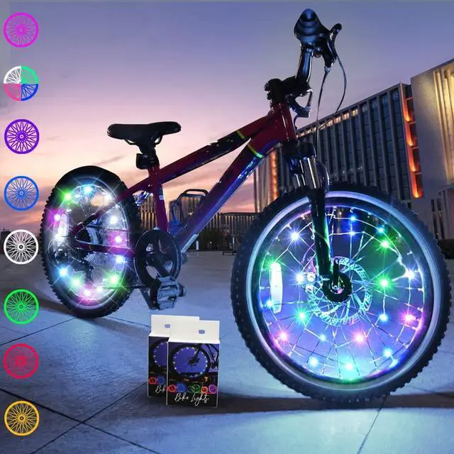 [GREAT SAFETY AND COOL RIDING]: Bright and attractive wheel lights show glorious flash sight in night, your wheel will be more noticeable, visible and safer. No riding speed requirement! Colorful spoke lights bring you tons of compliments when riding. Lights fix on the wheel tightly, no worry about falling. Bike wheel lights wont affect cycling speed and gravity force. Enjoy the fun of riding with your loved ones!