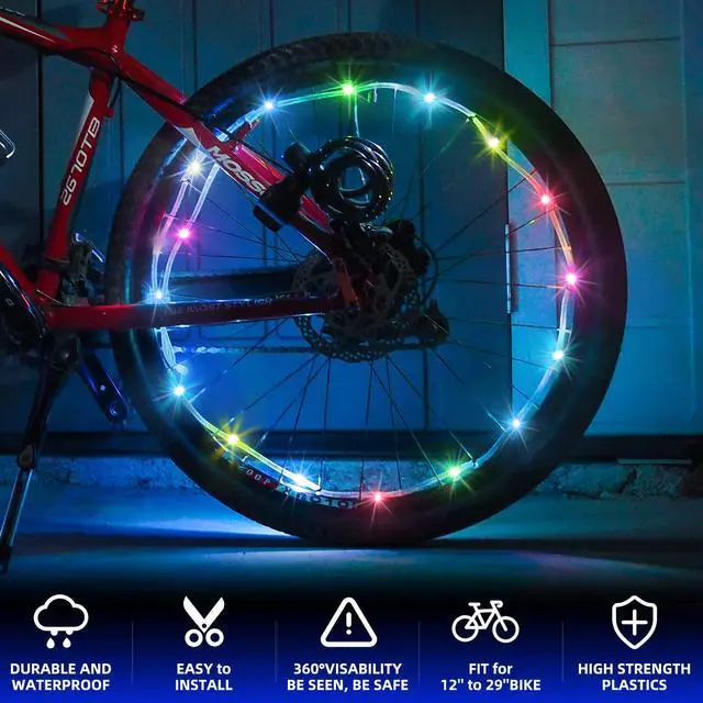 - Bike spoke lights fit for bicycles from 12’’ toddler bikes to 29’’ adult bicycles with standard spokes, such as mountain bikes, road bikes, hybrid bikes, BMX bikes, folding bike, etc.