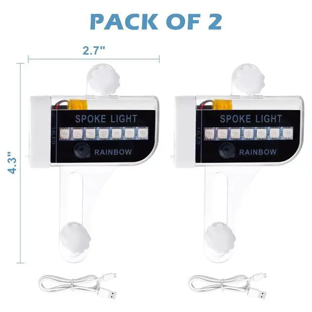 [HIGH BRIGHTNESS LED] With 14 bright LED lights, our rechargeable bicycle spoke light ensures high brightness and visibility from all angles during night rides. Stand out in the darkness and become the center of attention with this bicycle tire light.