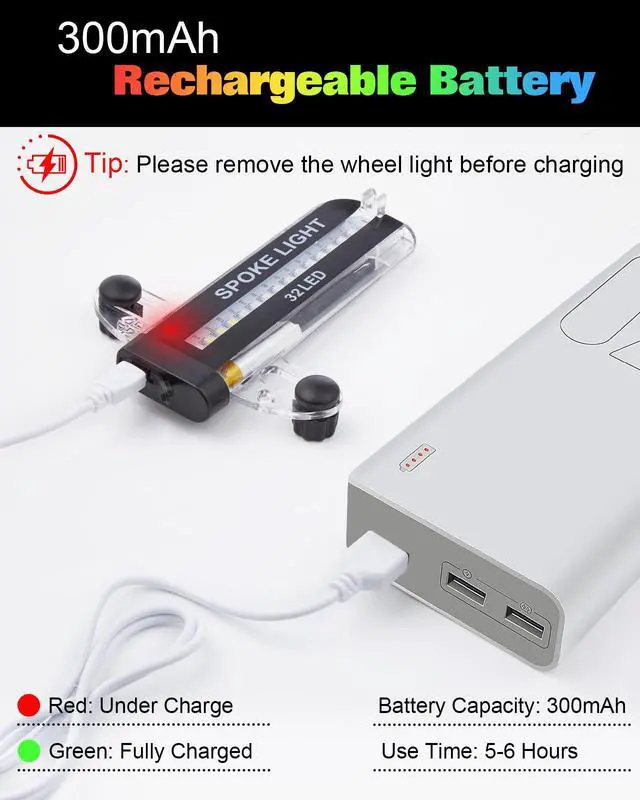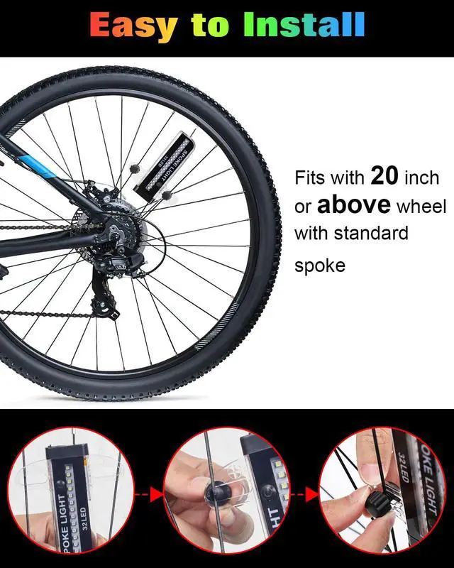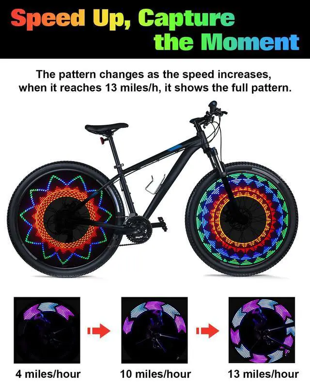 Weatherproof and Durable Design: Designed with IPX6 waterproof rating, led bike wheel lights are built to withstand various weather conditions. Ride confidently, even in the rain, knowing that your bike lights are protected. Please note: do not submerge the lights in water for prolonged periods