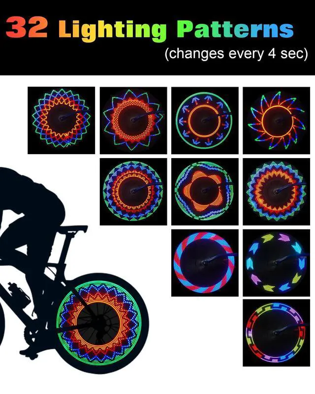 Ultra Bright 32-Color LED Patterns: Illuminate your ride with 32 vibrant LED lights that cycle through a variety of colorful patterns every 4 seconds. Enhance your visibility and ride in style, ensuring safety during nighttime cycling adventures