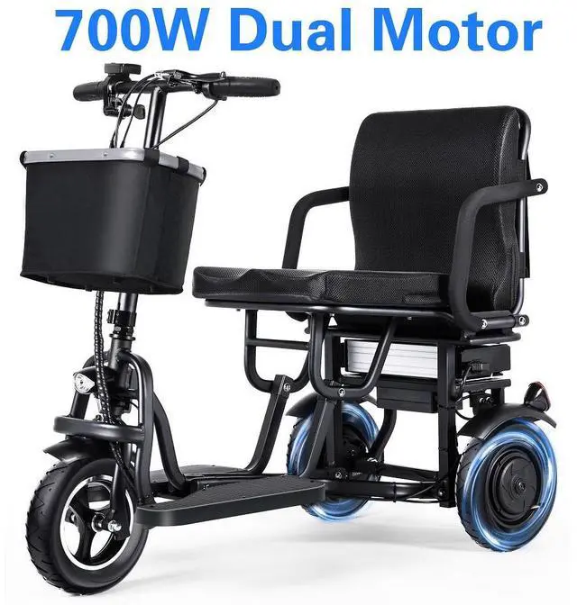 TopMate ES11 3 Wheel Electric Scooter Lightweight Folding Dual Motor Powered Mobility Scooter for Adult Seniors with Ergonomic Seat and Removable Battery, 3+1 Speed, E-Trike with Basket - Black