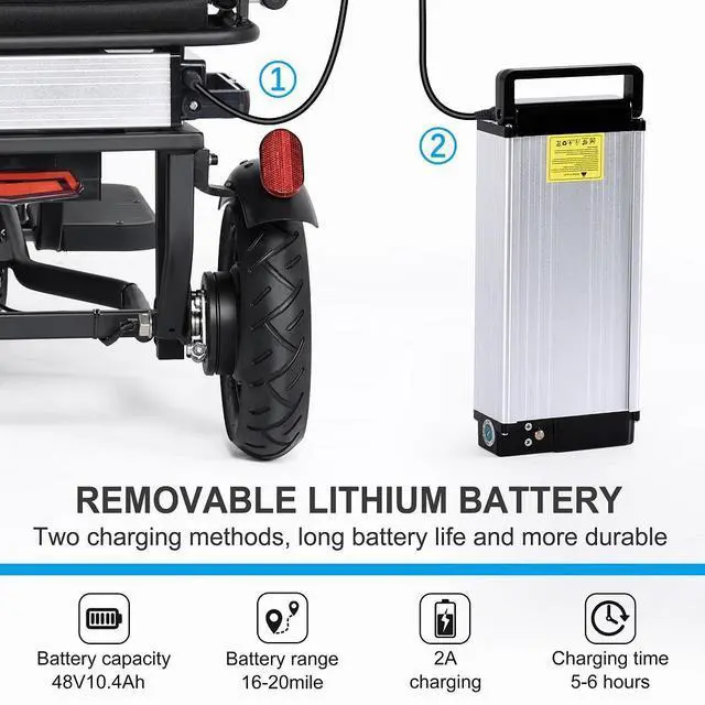 Removable Battery: The 48V 10.4Ah lithium battery offers 16-20 miles per charge and removes easily for convenient charging at home or on the go. Fast 5-6 hour charging means it's always ready for your next trip.