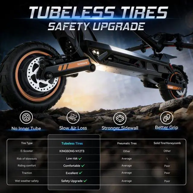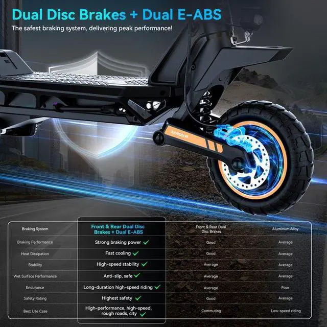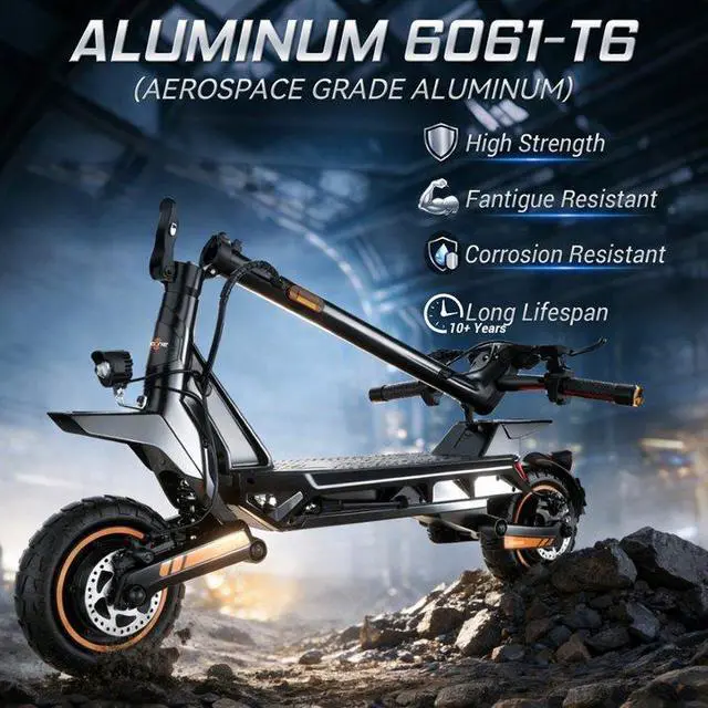 Suspension & Ride Comfort: Equipped with a full front and rear independent suspension system paired with 10-inch puncture-resistant tubeless tires, effectively filtering vibrations for a stable ride on concrete, asphalt, and uneven surfaces.