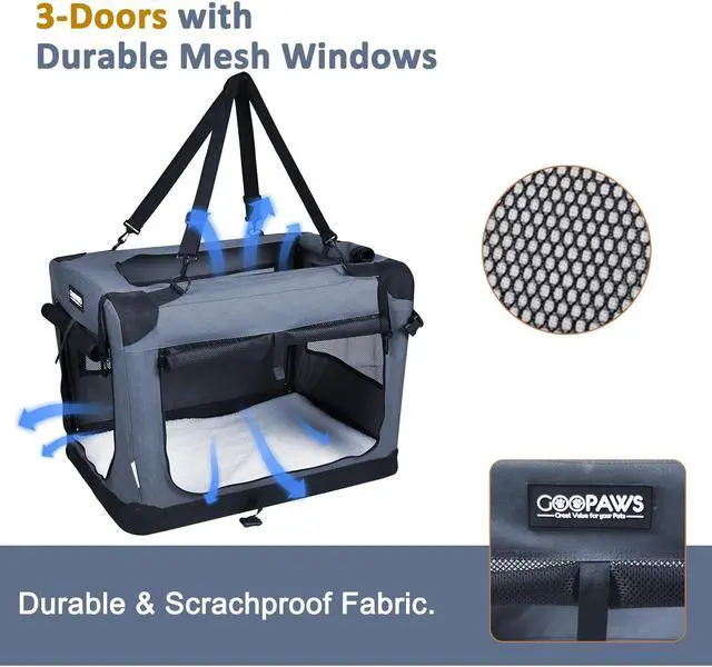 Give your lovely pets a comfortable place to rest with the Jespet Soft-Sided Dog Crate. It features three entrance doors for easy access and to provide your pets with plenty of ventilation.