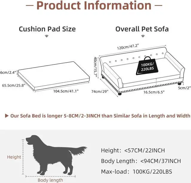 2-3 inch longer and wider than other sofa bed, great for large dogs or two dogs.