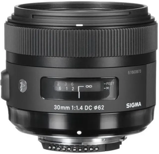 The 30mm f/ 1.4 DC HSM Art Lens for Nikon from Sigma is a prime lens designed for Nikon DX format cameras. Its 35mm focal length equivalent is 45mm which places it in the category of standard focal length lenses. With its particularly fast maximum aperture of f/ 1.4, the lens will perform very well in low light situations and provides shallow depth of field focus. With updated optical configurations (9 elements in 8 groups), as well as rounded aperture blades, the lens delivers sharp detail and nice background bokeh. Its minimum focus distance is 11.8" (30 cm).